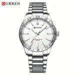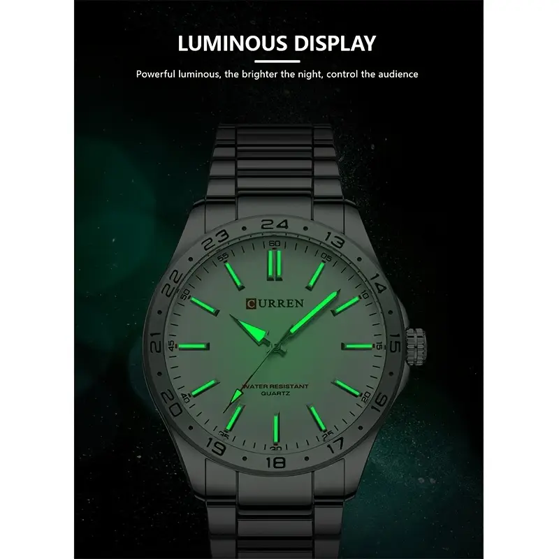 CURREN Reloj de Hombre Auténtico, Correa de Acero Inoxidable Minimalista y Moderna con Manecillas Luminosas, Reloj de Pulsera de Cuarzo Casual para Deportes y Natación, Ropa Casual para Uso Diario.